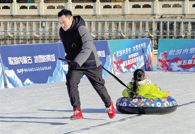 本次活动由呼和浩特市体育局主办。现场设置冰球打击、雪地拔河、雪圈拉力赛、抽冰陀螺、雪地飞盘掷准赛、冰壶撞击6项比赛,来自呼和浩特市40余家企事业单位的800余人参加。