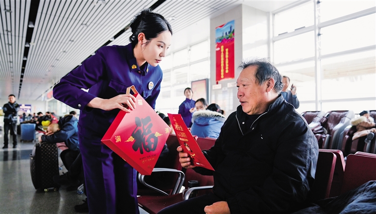 春运期间,鄂尔多斯市消防救援支队宣传人员先后来到鄂尔多斯火车站、汽车客运站等地,对车站候车室、配电室、微型消防站等进行消防安全检查;针对客流量大、人员密集等特点,利用旅客候车的间隙到候车大厅、进站口、列车站台、列车车厢等人员密集场所向旅客发放宣传资料和文创产品,通过互动问答的形式向过往旅客和车站工作人员重点介绍了火灾预防、火灾报警以及逃生自救等消防安全常识。提醒旅客请勿携带易燃易爆物品上车,注意家庭安全用火用电用气,燃放烟花爆竹期间注意安全,及时清理阳台、走道、楼梯间、疏散通道的杂物,在寒冷冬日传递平安温暖,确保旅客出行安全。