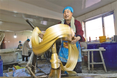 “二十三,糖瓜粘;二十四,扫房子;二十五,做豆腐;二十六,去买肉……”1月22日正值农历腊月二十三,冬日暖阳的照耀下,呼和浩特市托克托县新营子镇黑城村沉浸在一派忙碌而又甜蜜的氛围中,当地传统手工生产的非遗美食麻糖,在此时迎来了产销旺季。一间间麻糖工坊内,工人们正加紧生产,糖团在拉糖师傅的手中缓缓变长、变细,泛出金色的光泽。记者了解到,目前黑城村麻糖工坊有15家,每天出产麻糖4000多斤,每年可售出麻糖36万斤。文·摄影/《内蒙古日报》记者 郑学良 实习生 乌力更
