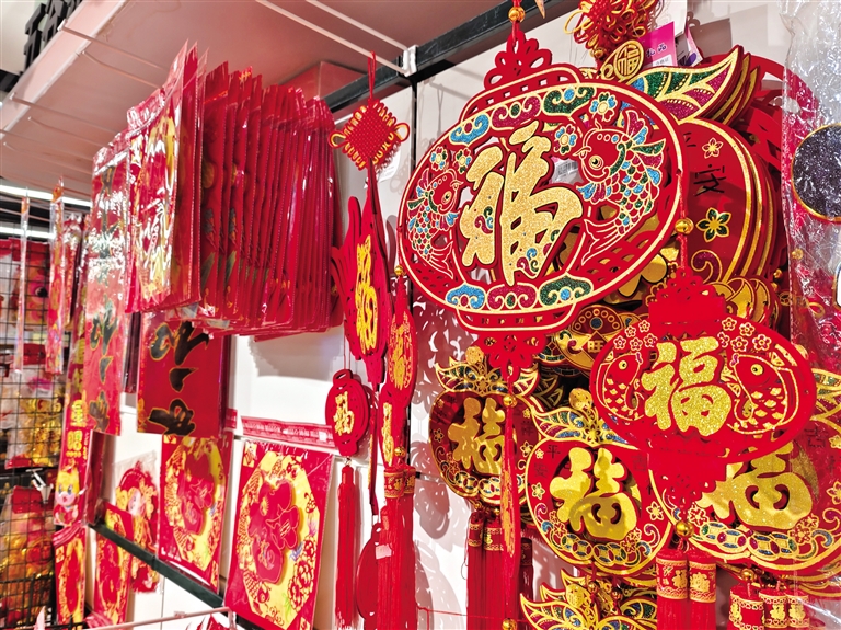 春联、福字的销售量也持续攀升,印刷精美的各种创意春联备受人们喜爱,一些融合了现代元素的节庆饰品,如带有卡通形象的福字贴、发光的春联挂件等,深受年轻人和小朋友的欢迎。