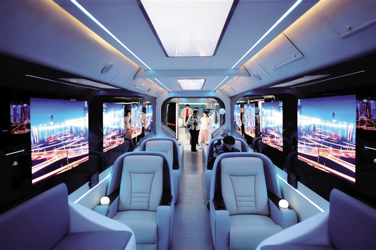 “哇,这辆车好酷!我希望能早点坐上它。”一位前来参观的小朋友看着“青城未来号”兴奋地说。