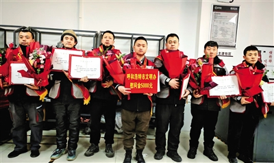 当天,呼和浩特市精神文明建设办公室授予顺丰快递救火7人集体“青城好人”称号,市委宣传部副部长、文明办主任张东霞向7位救火英雄颁发青城好人证书和奖章,并送上5000元慰问金和鲜花。呼和浩特市委社会工作部、两新工委授予7人“新新之星”称号,并为他们发放慰问金。赛罕区消防救援大队授予7人“消防公益使者”荣誉称号,并送上纪念品。呼和浩特市委政法委的相关负责人也为7人送上了慰问金。内蒙古顺丰速运有限公司奖励7位救火英雄7000元,感谢他们的英勇付出。捧着沉甸甸的荣誉证书,二十一营业部负责人木仁心情激动。“当时没想那么多,就想着赶紧把火情控制住,我们拿着灭火器冲进火场时,浓烟特别呛鼻,火势凶猛,但是大家没有害怕,也没有退缩。”木仁回忆说,2月7日7时54分,他正准备给员工开早会时,听见外面有人喊着火了,他外出查看情况,发现附近的洗车房内浓烟滚滚。他立即拨打电话向消防部门报警,随后招呼营业部的快递小哥们,大家拿起灭火器一起冲向火场,经过10分钟左右的紧张灭火,他们在消防车赶到之前将火源控制。消防员赶到后,经过15分钟左右,将火彻底扑灭,现场没有人员伤亡。