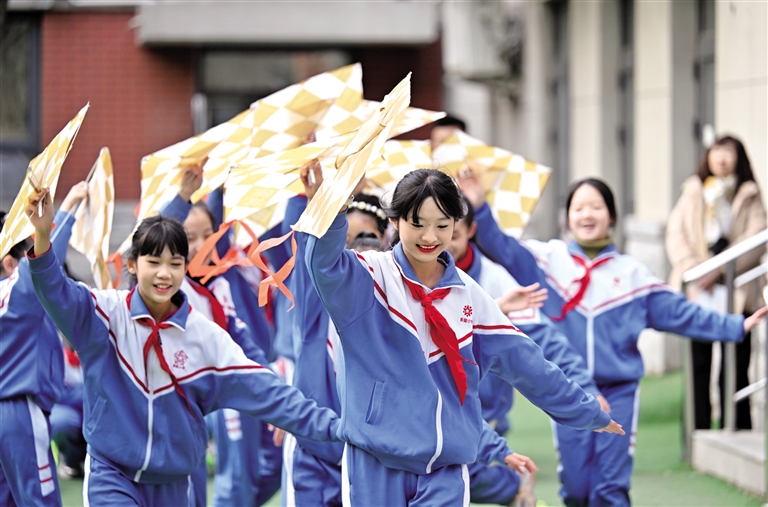 2月17日,在天津市和平区新星小学,学生们在开学典礼上表演节目。当日,全国多地中小学开学,师生迎接春季新学期。摄影/新华社记者 李 然
