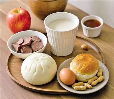 奶豆坚果提升营养。奶豆是指奶类和大豆及其制品。牛奶、酸奶、奶酪等是钙、优质蛋白质和维生素A、维生素D等营养素的重要来源。早餐时喝一杯牛奶或者豆浆,面包中加片奶酪或者馒头上抹些酱豆腐,吃两块豆腐干等,都能提高优质蛋白质、钙的摄入量。在此基础上,建议大家加一把坚果,这类食物富含维生素E、多种B族维生素,以及铁、锌、钙、镁等各种矿物质,更能提高早餐质量。