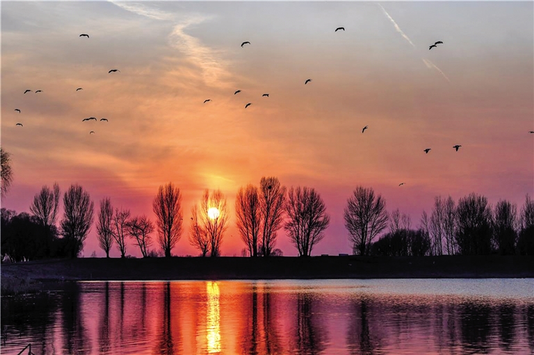 2月18日,呼和浩特市大黑河落日余晖美景醉人,赤麻鸭等候鸟在水中游弋,绘制出一幅和谐的生态画卷。大黑河是黄河在内蒙古境内最大的一级支流,在呼和浩特市境内全长149公里,被誉为呼和浩特市的“母亲河”。大黑河玉泉区段与上游赛罕区段的水系实现全线连通,南北岸环线道路也已全面贯通,经过持续治理,环城水系的水质得到了显著提升,呈现出碧波荡漾的美景,两岸绿树成荫,为市民提供了一个宜人的休闲与游玩场所,也为城市增添了一张亮丽的名片。(据草原云)
