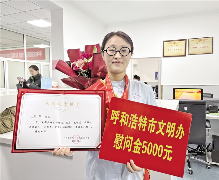 张慧是该医院皮肤科的一名护士,接过“青城好人”荣誉的她表示自己有点受宠若惊的感觉。“当时,我的第一想法就是把人救活。”张慧回忆,2月15日,她在白塔国际机场看到一名男子突发疾病倒在地上,出于职业本能,第一时间上前施救。她通过检查发现男子颈动脉搏动消失,瞳孔由散大变为缩小,呼之不应,呼吸特别微弱,便立即跪地为男子进行心肺复苏和人工呼吸。经过5分钟左右的施救,男子心脏恢复了跳动。此时机场的急救人员也赶到了,为男子进行了救治。随后120急救人员到来,将男子送往医院。