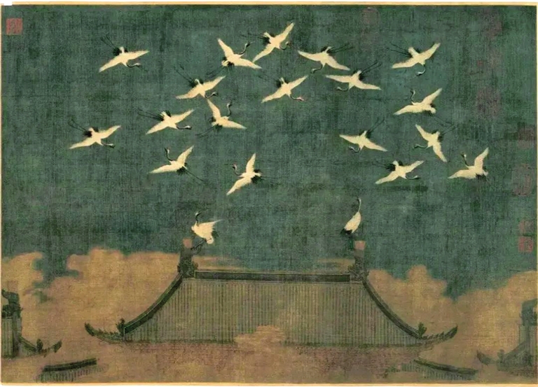 阐教仙门重地玉虚宫的外景一出,引得观众连呼“好美”。它的色彩与布局,是对宋徽宗名画《瑞鹤图》的致敬。