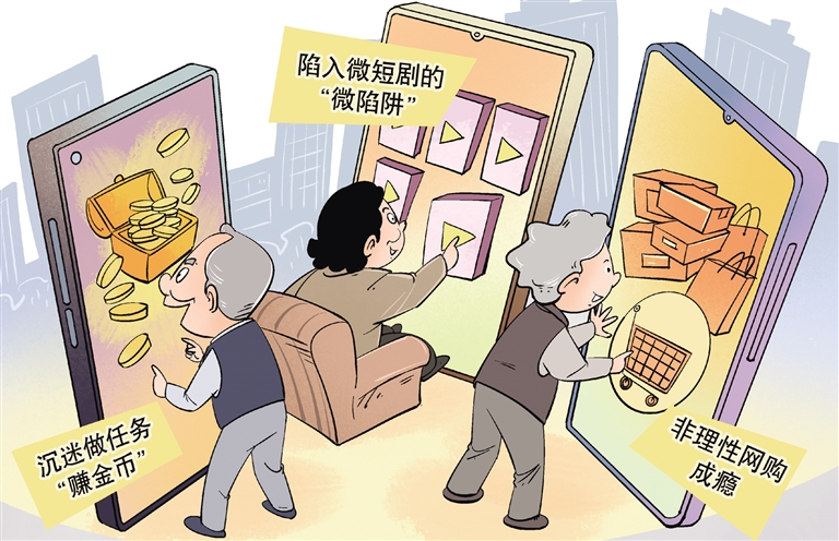 记者发现,在短视频、直播、微短剧等领域,一些营销手段和骗局也开始“适老化”,加上算法机制精准捕获,让辨别能力不足的老年人容易形成行为依赖。