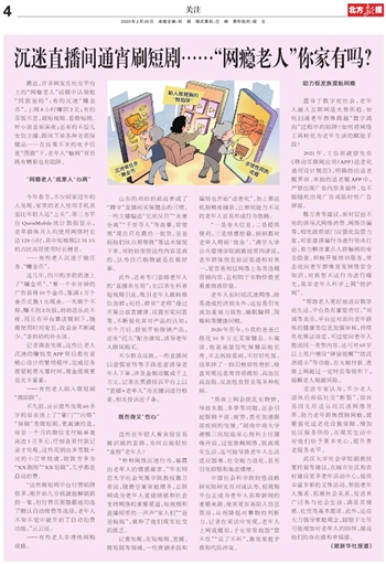 “种种网络沉迷行为,暴露出老年人的情感需求。”华东师范大学社会发展学院教授魏万青说,随着空巢家庭增多,互联网成为老年人重建情感和社会支持网络的重要渠道,短视频和直播间里的一声声“家人们”“爸爸妈妈”,填补了他们现实社交的匮乏。
