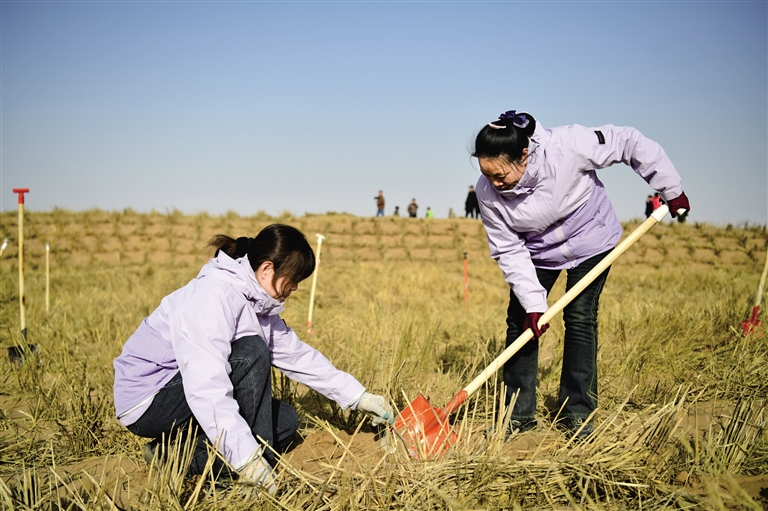 阿拉善盟委书记黄雅丽说:“40多年来,全盟累计实施防沙治沙面积近1亿亩,在三大沙漠边缘构筑起一道‘绿色防线’,并形成合围之势。现在,我们合龙三大沙漠林草锁边带,用总长度1856公里的防沙阻沙带把三大沙漠紧紧围住、牢牢锁住,进一步筑牢祖国北方重要生态安全屏障。”