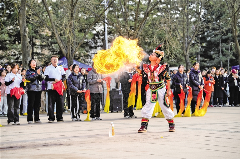 “咚咚锵!咚咚锵!”随着阵阵铿锵有力的锣鼓声响起,内蒙古鸿德文理学院的学生们共同舞动长龙……2月28日,该校举办了一场以“龙腾盛世 抬头迎春”为主题的活动,迎接3月1日农历二月初二“龙抬头”的到来。在活动现场,舞蹈、演奏、合唱等精彩纷呈的节目接连上演,学生们尽情释放多彩青春。