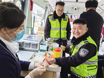 “我是第一次献血,首次就成功了,特别开心,希望能帮助到有需要的患者。”玉泉区交管大队九中队的冯超说。玉泉区交管大队十中队的袁超是血液中心的常客,已经坚持无偿献血9年,累计献血5200毫升。“献血可以促进新陈代谢,提高自身免疫力,还可以帮助到他人。我爱人也经常和我一起献血,无偿献血成了我俩共同的坚持。我的下一个目标是捐献血小板,帮助更多的患者。”袁超说。