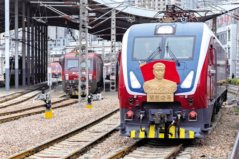“周恩来号”机车自1978年命名,47年间从内燃机车到电力机车更迭了四代机型。2015年,第四代“周恩来号”机车“和谐型”HXD1D-1898号正式上线运行至今,目前担当上海至南京间的K1555/K1556次旅客列车牵引任务。