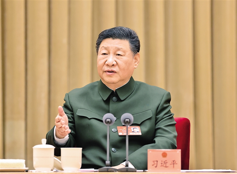 习近平指出,完成我军建设“十四五”规划目标任务,离不开国家经济社会发展大体系支撑。要强化军地合力,用好地方优势力量和资源,提高我军建设质量和效益。要抓住我国新质生产力蓬勃发展机遇,创新战斗力建设和运用模式,健全先进技术敏捷响应和快速转化机制,加快发展新质战斗力。