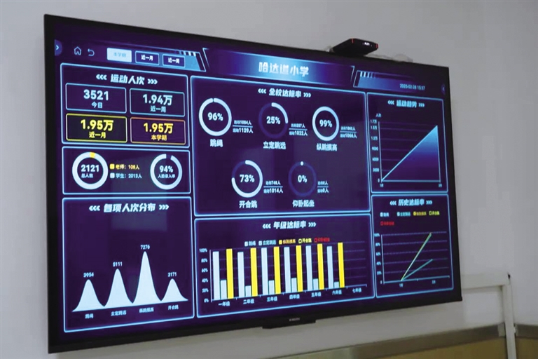 新学期伊始,包头市青山区哈达道小学学生们惊喜地发现,校园设置了多处地面游戏,加上之前的微篮球场、微单双杠运动区、跳远沙坑区等,校园成了运动乐园。其中,“AI运动吧”成为课间学生新宠,学生根据屏幕提示运动,跳绳、跳远、开合跳、纵跳、摸高、仰卧起坐等日常运动实现数字化。同学们可以制定合理运动计划,实时调整运动模式,还能了解自己的身体状况。