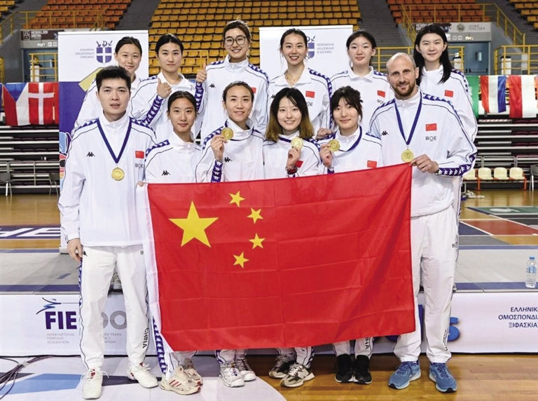 “拿到冠军很开心!今天在场上遇到强的对手没有放弃,无论领先还是落后我们都认真对待每一剑。”饶雪怡说。作为近两年涌现出的青年新秀,饶雪怡以主力身份获得2024年亚锦赛女佩团体冠军,并在本赛季青年女佩世界杯匈牙利布达佩斯站斩获个人冠军。
