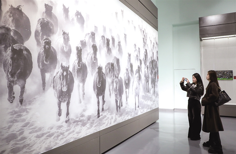 3月12日,呼和浩特市民欣赏蒙古马摄影作品。“驰骋北疆 赓续华章——‘群星璀璨’蒙古马精神主题摄影作品展”日前在内蒙古美术馆开展,展览共汇集了120幅摄影作品,以多元化的视角呈现“蒙古马精神”和内蒙古自治区各族人民坚韧不拔、勇往直前的精神风貌。