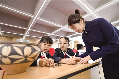 “不同的陶器花纹有着不同的寓意,让我感受到我们中华文化的博大精深。”学生王景韬说。
