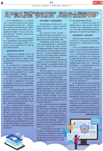 强化隐私保护意识,对过度收集、滥用数据等行为说“不”。何延哲建议,机构和网络平台等应从用户和消费者角度出发,更加重视个人信息保护,决不能为了蝇头小利出让个人信息权益。对明显存在过度收集用户信息和潜在的侵犯公民个人信息的违法犯罪线索,网络用户可及时向互联网管理部门和公安部门举报。