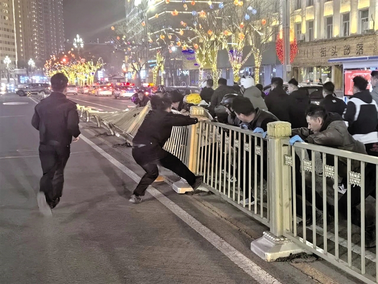 新报讯(草原云·北方新报记者 特木其乎 通讯员 贾德京) 3月24日夜间,呼和浩特市天气突变,狂风骤起黄沙漫天,呼和浩特市公安局回民区分局中山西路派出所民辅警在巡逻过程中,发现中山西路道路中央长达百米的护栏倒地,严重影响了车辆的正常通行。有部分过路群众正试图将倒地的护栏扶起,巡逻车上的赵一鸣、周子谟、武斯渤见状,立即冲上前去参与其中,在众多热心市民的帮助下,大家齐心协力成功将护栏扶起,快速恢复了道路交通秩序。 此事很快在网络上热传,网友们纷纷留言点赞:“都是内蒙古的好后生”“年轻一代正能量满满”“呼和浩特是一座有爱的城市”“呼和浩特人真暖呀,很感动!”