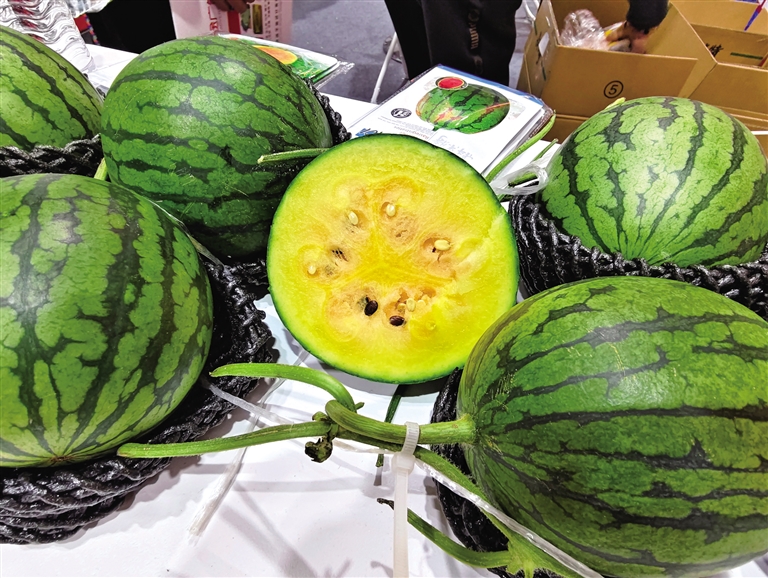 “你看这个彩虹瓜,中间是红色,两边是黄色,皮薄汁多,口感甜脆,是公司推出的新品种。”沈阳一家种业公司的负责人马先生正介绍着产品,除了彩虹瓜,草莓柿子、螺丝椒种子也很不错。