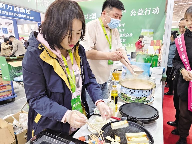 “欢迎品尝我们的羊杂,非常香!”在呼和浩特市一家食品厂展台前,参展商一边让大家品尝现煮的羊杂,一边介绍产品,吸引不少人驻足。