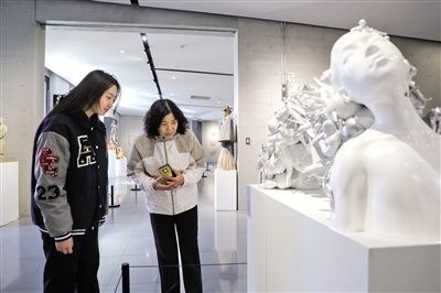 4月1日,呼和浩特市民正在观赏雕塑作品。据了解,“青城之星”第二届呼和浩特全国大学生优秀雕塑作品展于3月29日在呼和浩特雕塑艺术馆开展。本次展览共征集到来自中国美术学院、中央美术学院等全国60多所艺术院校600多位青年雕塑家的作品,最终遴选出108件优秀作品参展。此次展出的部分作品巧妙运用声、光、影像等表现手法,拓展了雕塑的形态边界,充分展示出青年雕塑家的艺术追求和创新精神。展览将持续到5月25日。