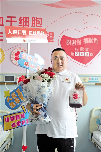 小赵是一名90后,成长在一个充满爱与榜样力量的家庭,母亲是自治区劳动模范,从小他就以母亲为榜样。2023年2月14日,二连浩特市红十字会开展“因为爱‘益’起爱”无偿献血公益活动,他跟随母亲来到献血现场。一个个挽起袖子、无私奉献的身影,深深触动了他,一颗爱的种子在他心中悄然种下。在现场普及造血干细胞捐献知识宣传中,小赵了解到捐献造血干细胞能够拯救血液病患者生命,便毫不犹豫留下血样加入中华骨髓库,希望有一天能成为那个点亮他人生命希望的人。