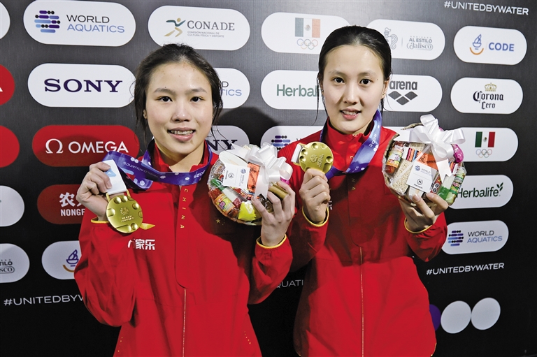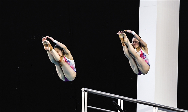 同样在最后一个比赛日进行的女子双人10米跳台决赛,中国队两名小将掌敏洁、卢为发挥出色,5轮中有4轮成绩排名当轮第一,最终以总分347.58分、领先亚军墨西哥组合30.96分的成绩夺冠。