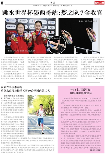 根据赛程,2025世界泳联跳水世界杯接下来将于4月10~13日进行加拿大温莎站的比赛。5月2~4日,2025世界泳联跳水世界杯总决赛将在国家游泳中心“水立方”进行。(据京报体育)