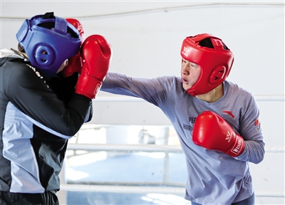 当日,记者在拳击馆内看到,在训练中李倩脚步轻盈,汗珠在额头滑落。她戴上拳套,走向沙袋,一记记重拳砸出,发出沉闷的“砰”声。内蒙古女子拳击队的数十名拳手正在同时训练,沙袋晃动,呼吸急促,空气中弥漫着汗水与坚持的味道。“防守,脚下要稳!”内蒙古拳击队总教练哈达巴特尔的声音在空间回荡。李倩的训练格外严格。除了常规力量训练、反应训练和体能循环,她还要进行一对一的与男拳手的实战模拟,几次交锋下来,气息都愈发急促。但李倩没有退缩,反而越打越稳,脚步灵活,出拳干净利落。