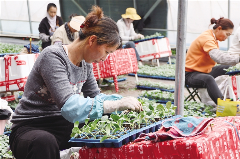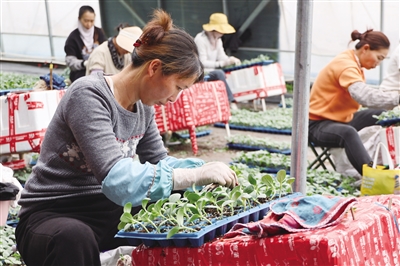 4月8日,工作人员在位于呼和浩特市的内蒙古蒙苗农业科技有限公司育苗大棚里进行种苗嫁接。眼下正值春耕备耕时节,种苗迎来销售旺季,一批批西红柿、西瓜等蔬菜瓜果种苗装车,发往北京、山西、浙江等地。1月至今,该公司累计销售各类种苗3000万株。摄影/草原云记者 马骏驰