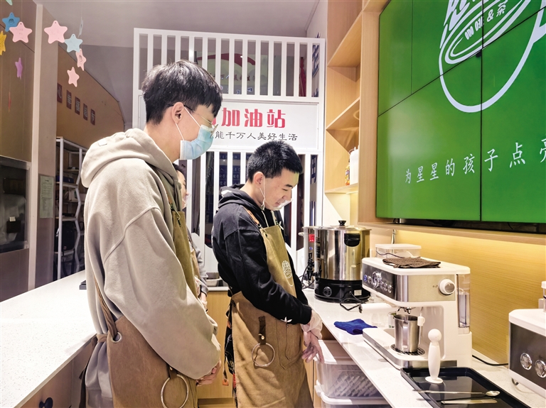 “刚开始孩子们连‘欢迎光临’都说不利索,如今已经能跟熟客聊天了。”咖啡馆一位工作人员骄傲地说。