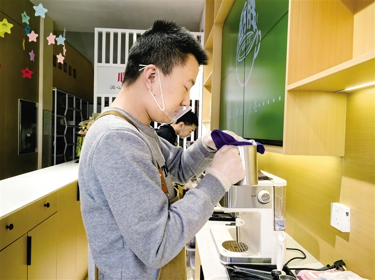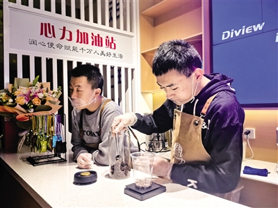 “我今年21岁,在这里工作很开心。”小宇一字一句地说着,一边从玻璃罐里取出咖啡豆,放入咖啡机后专注地研磨。从认识咖啡豆的产地标签、用计时器练习精准萃取,到学习磨豆机操作以及收费,“星青年”每天都有新的进步。