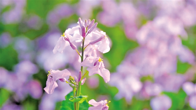 以前,一个冬天的严寒季节,居住在北方的人们一般以大白菜为主菜,很少吃到新鲜蔬菜,早春的荠菜就显得那么诱人。于是,田野间到处可以看到许多挖荠菜的人。记得小时候,在这样的时刻,我为着贪玩和嘴馋,总是缠着母亲到田间挖荠菜。母亲一点都不着急,拉着我的小手说:“妈妈带你去挖比荠菜更好吃的二月兰。”