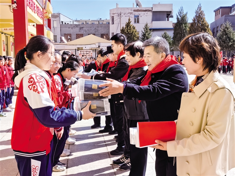 4月14日,呼和浩特市回民区县府街小学关工委联合呼和浩特市公安局、回民区关工委、环河街道关工委、环河街派出所关工委、工人南社区关工委,共同举办“国家安全 你我守护”国家安全教育日主题活动启动仪式。各单位向学校捐赠了《共筑反恐防线 构建平安首府》等青少年读本、网络安全手册及主题文具,并通过宣讲、倡议等形式强化师生国家安全意识和校园安全教育。 摄影/谭 芳