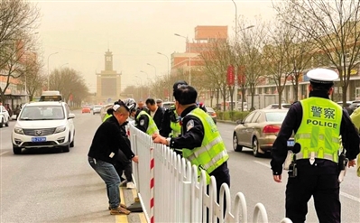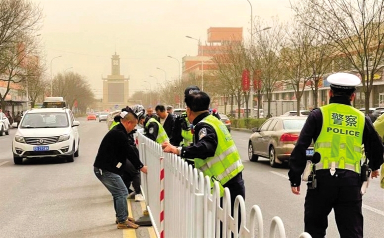 包头市公安局交管支队东河大队二中队中队长张伟讲述了当时的情景:“当时风太大了,护栏又长又重,需要多人交替作业一段段地扶起护栏,由于人手有限进展缓慢。关键时刻,一名身着迷彩裤、肩背白色双肩包的年轻身影出现在风沙中,陆续又跑来几位市民与民警齐心协力扶起倒地的交通护栏,让受阻的交通得以恢复顺畅。”