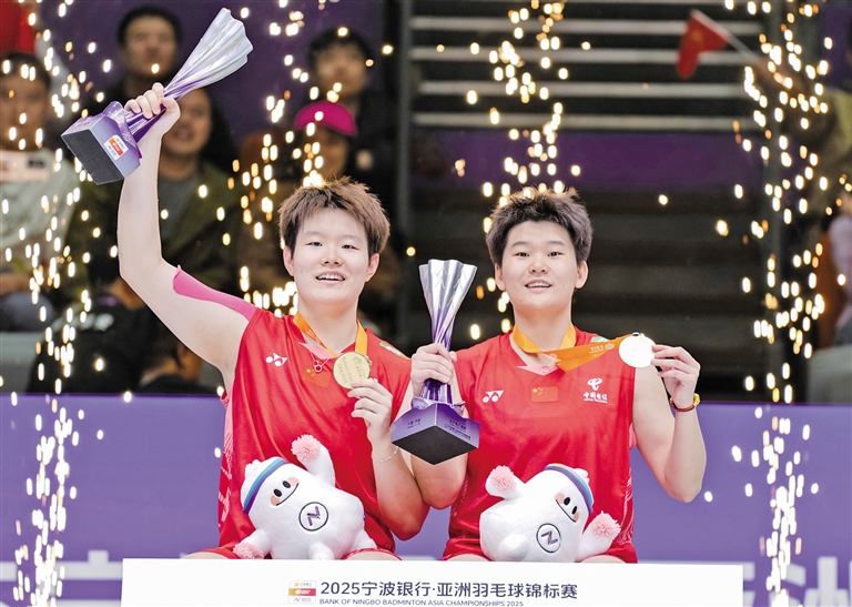 赛后的颁奖仪式上,谭宁、刘圣书拿到冠军奖杯非常开心,还用嘴“啃着”奖杯,这是她们夺冠的习惯,但今年以来却是第一次。去年巴黎奥运会获得亚军之后,两人拿到了多站比赛冠军,世界排名也上升至第一位,并荣获2024年度最佳女双组合。但今年以来,两人迎来了瓶颈期,亚锦赛之前参加的4站世界羽联巡回赛都没能登顶。马来西亚公开赛止步半决赛、印度公开赛止步1/4决赛、全英公开赛止步半决赛、瑞士公开赛获得亚军。“我们感受到大家的冲击了。”谭宁表示,“像全英公开赛半决赛我们想到了很困难,但没有做好最困难的准备。”