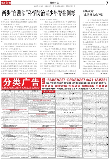 两步“自测法”科学防治青少年脊柱侧弯