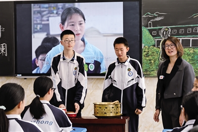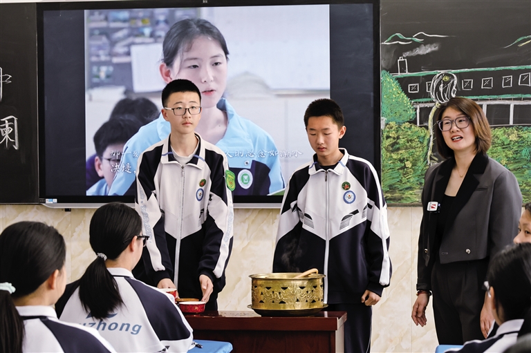 潇冉,你知道吗?当天下午,集宁区第五中学八年级(12)班里,同学们以你的作文为主题,举行“文里·物间·话中 漫溯家乡情澜”主题班会。你成了班里的小明星,大家集体朗读你的作文《旧轨还乡》后,争先恐后地发表自己的读后感。席淑雅同学说:“听完潇冉同学的作文,我被文中的思乡之情所感动,让我想起了在和林格尔县的姥姥姥爷。”她为大家朗读了自己的文章《我的归乡时刻》,同样感人至深:“推开铁门时,暮色正漫过青砖墙,姥姥围着蓝布围裙从灶台前转身,白发沾着面粉,围裙兜还揣着颗剥好的熟鸡蛋……”在“乌兰察布知多少”环节,同学们学习了蒙古族的服饰文化和饮食文化,即兴表演蒙古族歌舞《银杯》。载歌载舞、同唱民歌的欢乐场面感染着观看直播的广大网友,大家在评论区纷纷留言,为内蒙古的青少年点赞。随后,几位同学通过镜头向全国网友推荐“黄花沟”“苏木山”等乌兰察布的著名景区,邀请全国网友前来打卡、游玩。