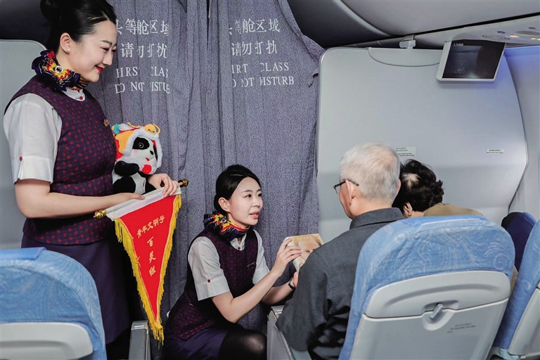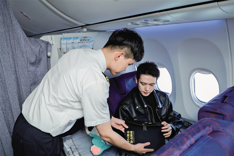 国航内蒙古公司与天猫图书合作,用心准备了来自“天猫榜单必读榜”的精选书籍,期待由真实消费数据甄选出的口碑佳作,陪伴旅客度过一段惬意的空中之旅。飞机进入平飞阶段后,乘务组向旅客免费赠送包装精美的“好书盲盒”,书籍涵盖小说、传记、散文等多个种类。为了给旅客创造更加丰富的旅行体验,精心设计“禧辰共礼”书签,在世界读书日来临之际为广大旅客提供贵宾礼遇增值服务,为在生日、结婚纪念日当月乘坐国航实际承运的呼和浩特出港航班的旅客,免费提供呼和浩特机场国航贵宾休息室及麻辣烫、牛肉面等“蒙太奇”系列美食尊享服务。