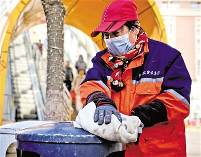 李秀平的敬业精神也感染着整个班组。环卫工人吴国霞今年40岁,她麻利地将垃圾倒入清扫车内,再将垃圾运往转运站。虽然每天和垃圾打交道,但吴国霞很开心。“我觉得当一名环卫工挺好的,365天都有活干,工资按时发放。我们家里好多人从事环卫工作,都以此为荣。”吴国霞说,公公、婆婆、丈夫,还有好几个姑姑、叔叔都是环卫工人,大家非常珍惜和热爱这份工作。