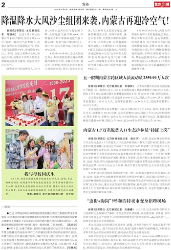 9日8时~10日8时,内蒙古西部偏东南和中东部偏南地区多云,鄂尔多斯市东北部、包头市南部、呼和浩特市、乌兰察布市大部、锡林郭勒盟南部、赤峰市南部、通辽市南部有小雨,其中,锡林郭勒盟南部偏南、赤峰市南部偏南有中雨,其余地区晴间多云;西部偏东和中部地区4~5级短时6~7级局地8级偏北风;中东部偏南地区气温继续下降。
