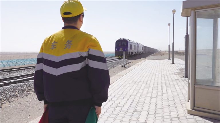 天鹅湖站是临策铁路627公里处一个五等小站。虽然叫天鹅湖,但这里既没有天鹅也没有湖,有的只是望不尽的沙海。全长768公里的临策铁路,沿线80%的地方是戈壁,90%的路段远离公路,其中400公里是无人区。由于临策铁路是单线,为了提升运输效率,每隔几十公里,就会有像天鹅湖一样的小站,主要是为了会让列车。“一站、两人、三餐、四季”是这些小站真实写照。当地气候干燥,全年风沙天数多,夏天像火烤,冬天像冰窖。