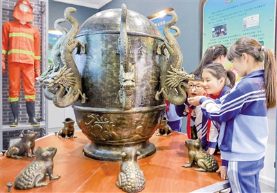 5月8日,学生们在地震科普馆了解张衡地动仪模型的工作原理。当日,呼和浩特市玉泉区地震局联合通顺街小学,组织学生走进玉泉区地震科普馆开展沉浸式安全教育活动。今年5月12日是第17个全国防灾减灾日,主题是“人人讲安全、个个会应急——排查身边灾害隐患”。孩子们通过亲身体验和互动学习,深入了解地震相关的科学知识。学生们在参观过程中,通过各种展品、多媒体展示以及虚拟现实技术所构建的场景,不仅学习到了地震发生时的自救和互助技能,还提高了他们面对地震灾害时的应急避险能力。摄影/草原云·北方新报首席记者 牛天甲