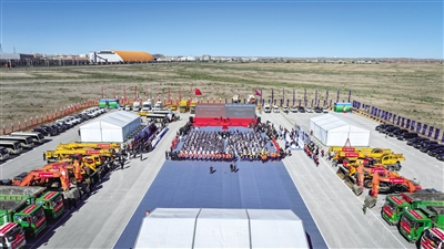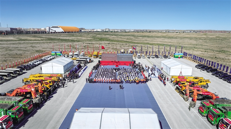 5月14日,中蒙两国能源合作重要通道——中蒙甘其毛都至嘎顺苏海图铁路的建设开工仪式在内蒙古自治区巴彦淖尔市乌拉特中旗甘其毛都口岸举行。这是继1956年二连浩特至扎门乌德铁路建成通车后,时隔近70年建设的第二条中蒙跨境铁路。(据新华社报道)