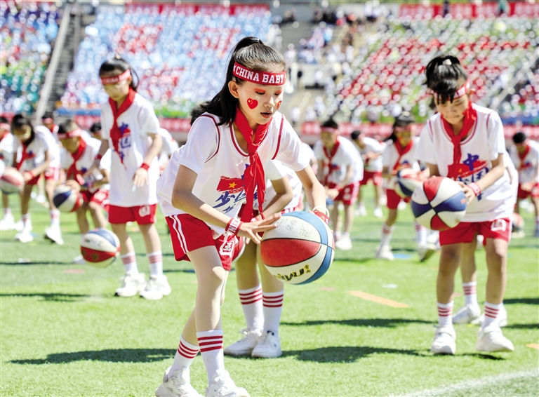 当日上午,伴随着激昂的《运动员进行曲》,国旗方队、裁判员、运动员代表队率先入场,各参赛单位方阵紧随其后,身着统一服装,步伐铿锵,口号嘹亮,充分展现玉泉区广大干部职工和青少年蓬勃向上的精神风貌。来自区属中小学的学生们表演了大型团体操《青山绿水粮满仓》、篮球排球操《球乐童心 燃爆梦想》、韵律操《爱我中华》,将传统体育项目与现代舞蹈融合,精彩的表演赢得了阵阵掌声。