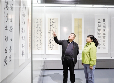 5月13日,呼和浩特市民正在欣赏书法作品。据了解,“翰墨同歌书华章”五城市书法作品联展于5月9~25日在内蒙古美术馆举行,共展出呼和浩特、包头、乌兰察布、鄂尔多斯、乌海5个城市作者的150件作品。本次展览旨在让更多人近距离感受书法的魅力,以书法记录时代风貌,实现文化与发展的共振。摄影/草原云·北方新报首席记者 牛天甲