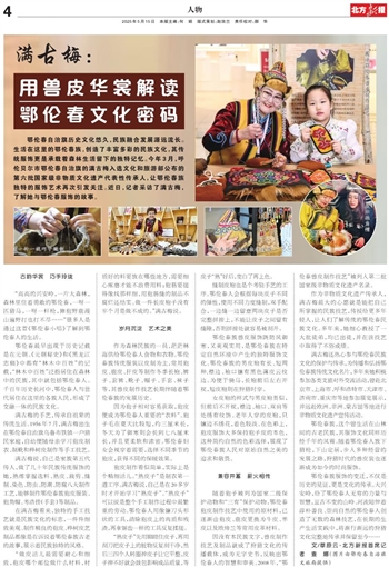 在满古梅看来,独特的手工技艺就是民族文化的标志,一件件细致美观、制作精良的狍皮、桦树皮艺制品都像是在诉说着鄂伦春族古老的故事,展示着民族独特的风格。
