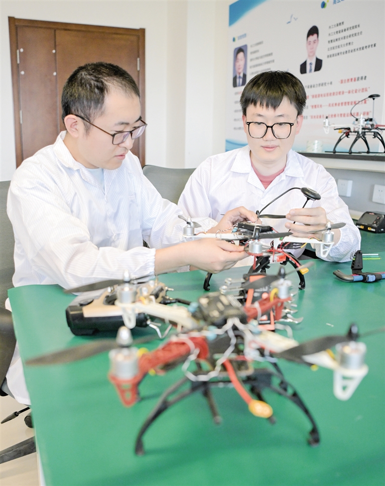 5月17日,在内蒙古自治区国家大学科技园内,内蒙古工业大学智能装备研究院科研人员正进行无人机设计研发。该科技园重点引入42个工大师生创新创业项目,其中多项技术填补自治区空白。目前,大学科技园汇集专业技术人才2000多名,为入孵企业提供科技金融服务、人才公寓等一站式服务。 摄影/草原云·北方新报首席记者 牛天甲